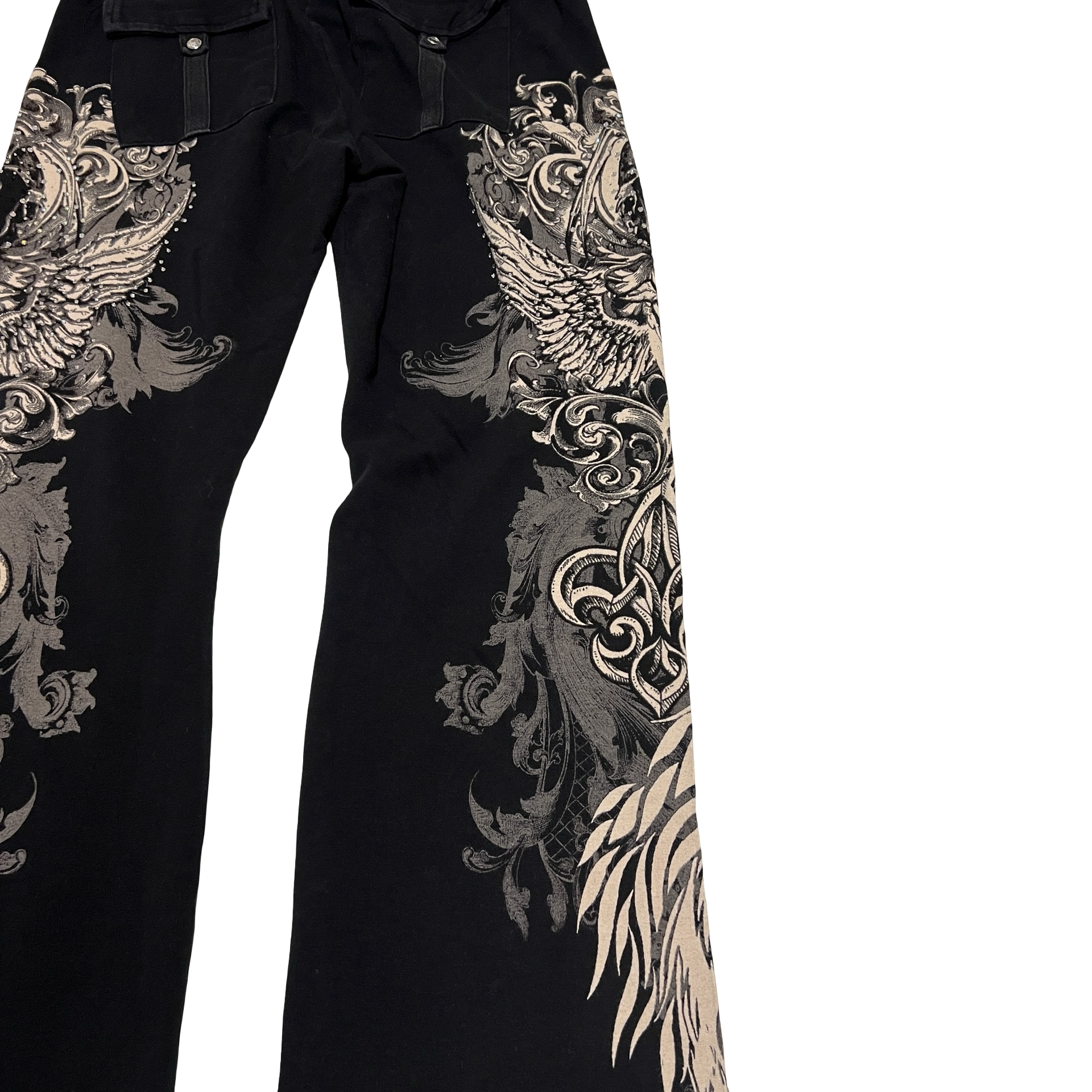(M) los angeles bus stop y2k skull wing crest bedazzled sweatpants