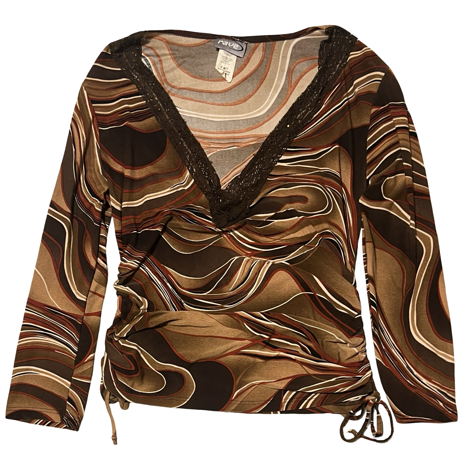 (L) vintage rave brown wavy top